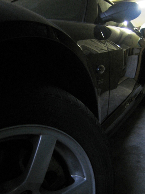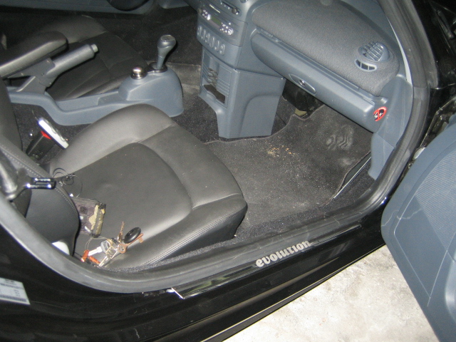 und schwarz lackiert, und die Abdeckung unter dem Lenkrad gleich mit.